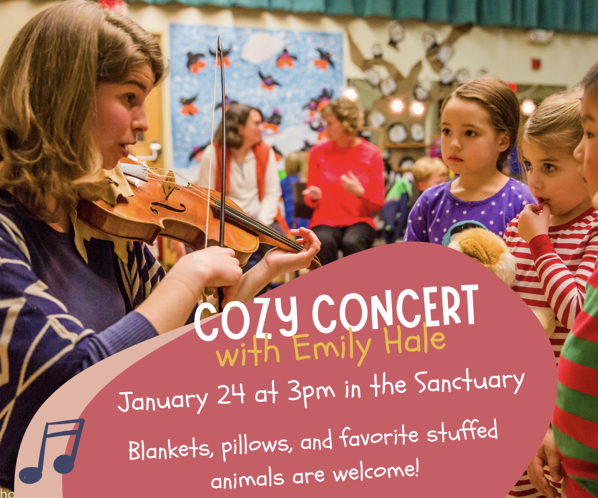 - Cozy Concert! 3pm in the sanctuary, with snacks and activities to follow