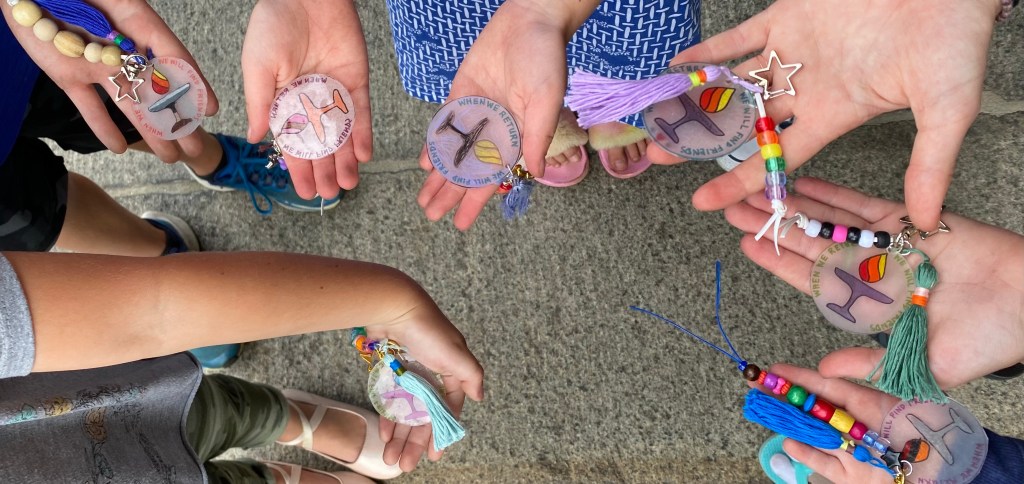 “When we return we will find friends” backpack clips project from a recent RE gathering